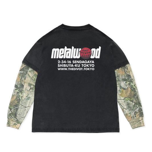 Metalwood x ANTi COUNTRY CLUB TOKYO x the Divot Layered Long Sleeve Tee - BLACK x Real Tree Camo -
