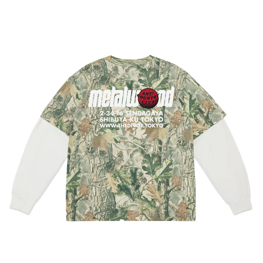 Metalwood x ANTi COUNTRY CLUB TOKYO x the Divot Layered Long Sleeve Tee - Real Tree Camo x White -