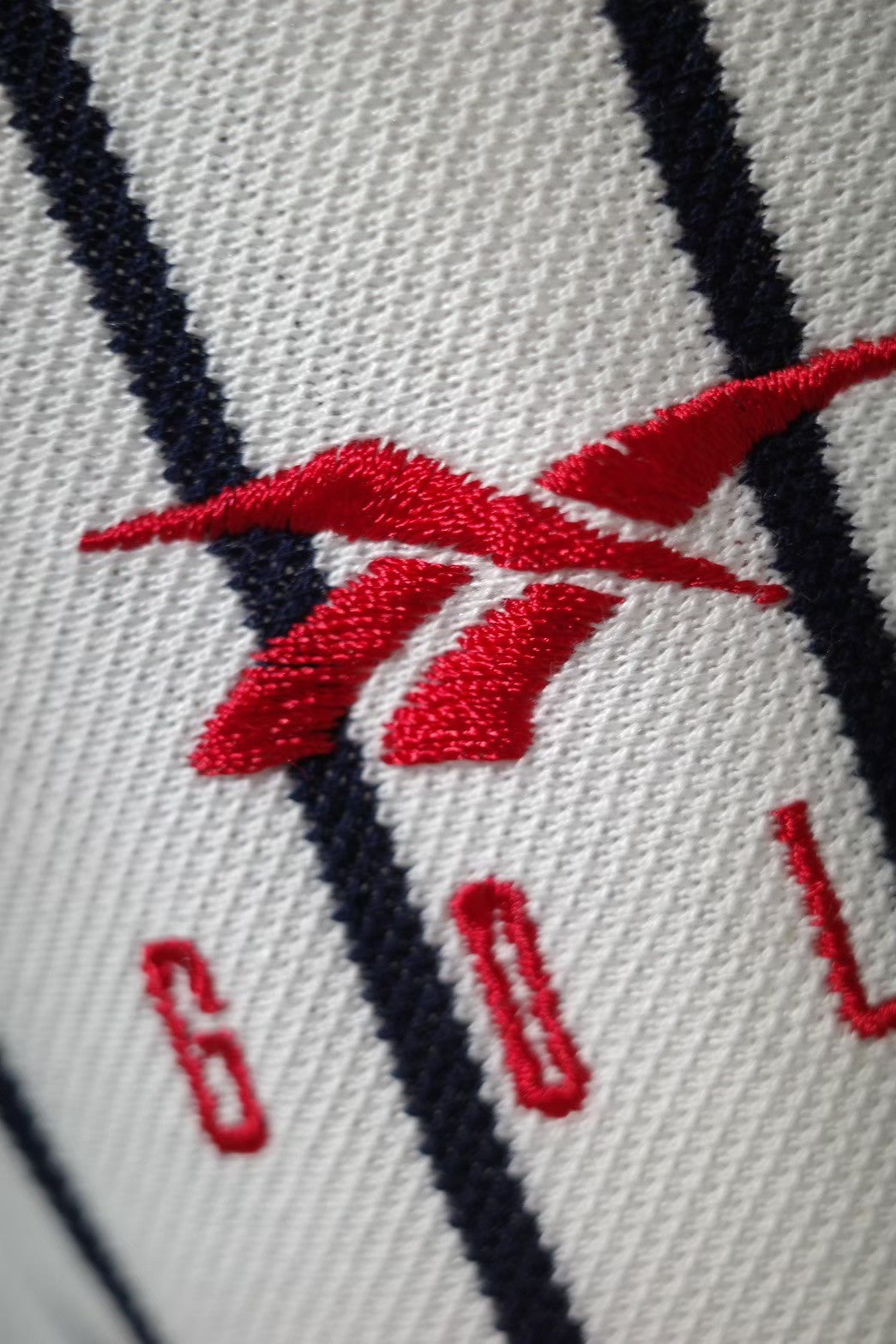 今回は Reebok のビンテージポロに、袖にストア名「the Divot」と刺繍を施しています。