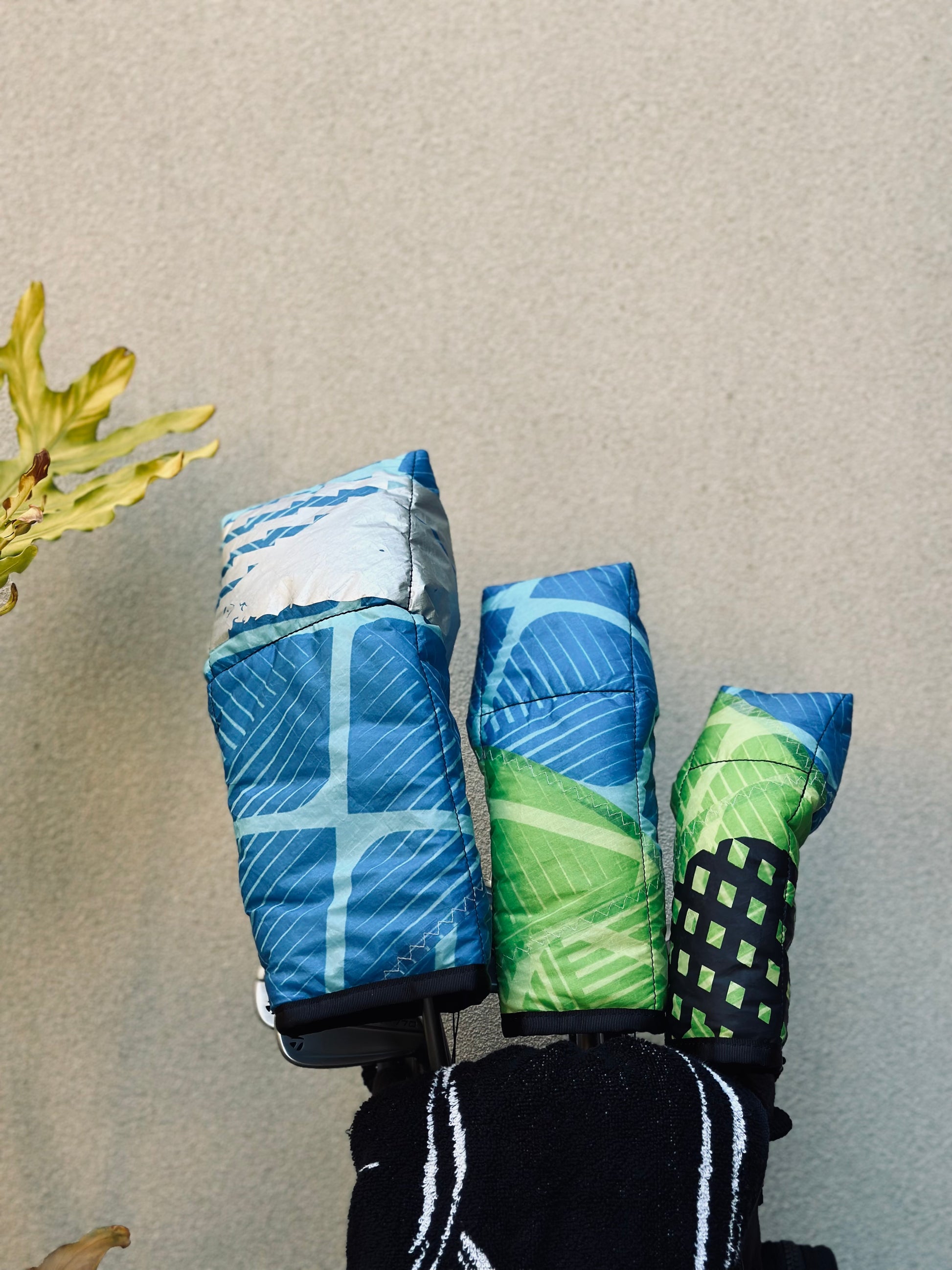 unique head covers are made from upcycled ship sails.